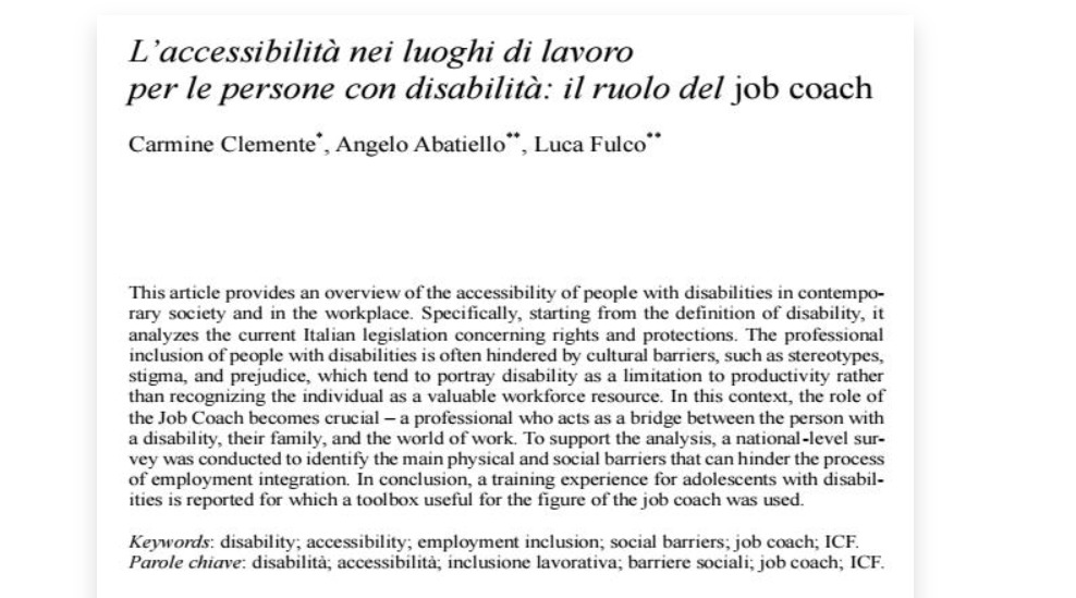 A tal proposito, sono stati coinvolti numerosi autori, tra cui anche il dott. Abatiello e il dott. Fulco, psicologi di Presìdi Educativi, i quali hanno discusso in merito all’accessibilità nei luoghi dei lavori, approfondendo il ruolo del job coach, in collaborazione con il prof. Clemente dell’Università di Bari.